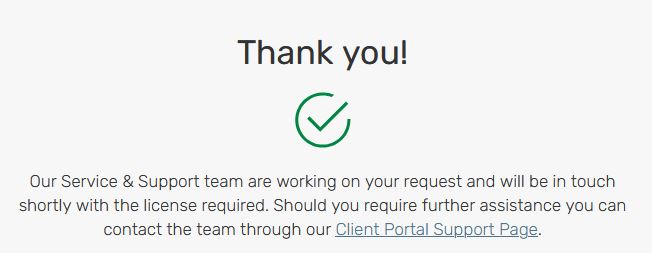 A confirmation email acknowledging the receipt of your license request will be sent from our servers. If you do not find this email in your Inbox, please verify your SPAM folder.